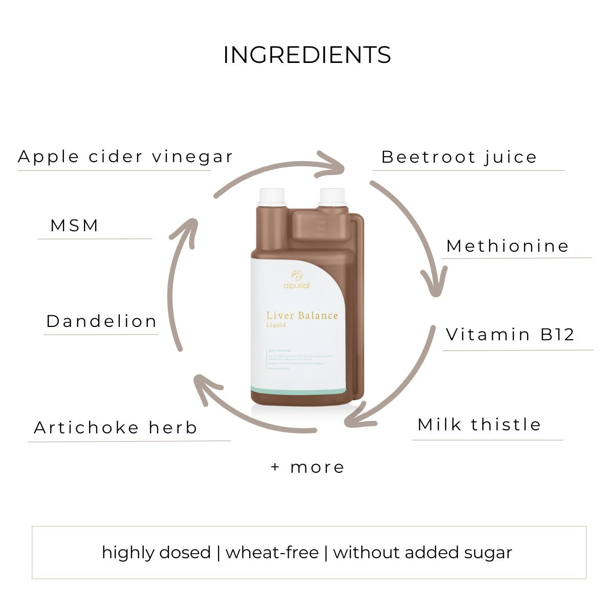 Sensory additives: Ginseng tincture 1,000 mg; Milk thistle extract (80% silymarin) 30,000 mg; Dandelion extract 5,000 mg; Artichoke extract 50,000 mg