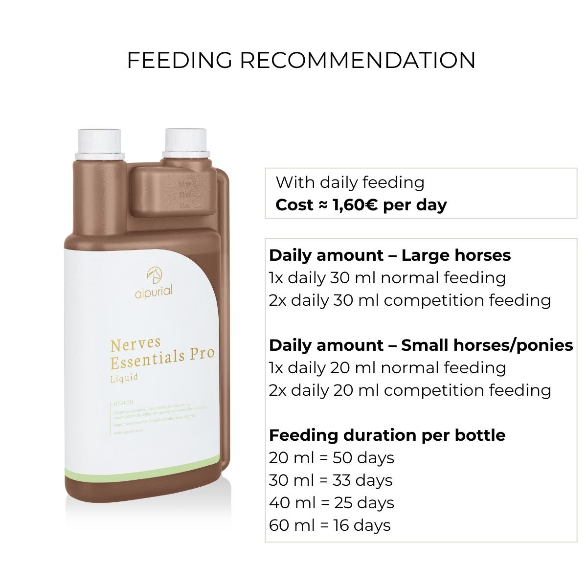 The feeding duration should be considered individually. Thanks to its natural ingredients, Nerves Essentials Pro can also be fed continuously without concern.